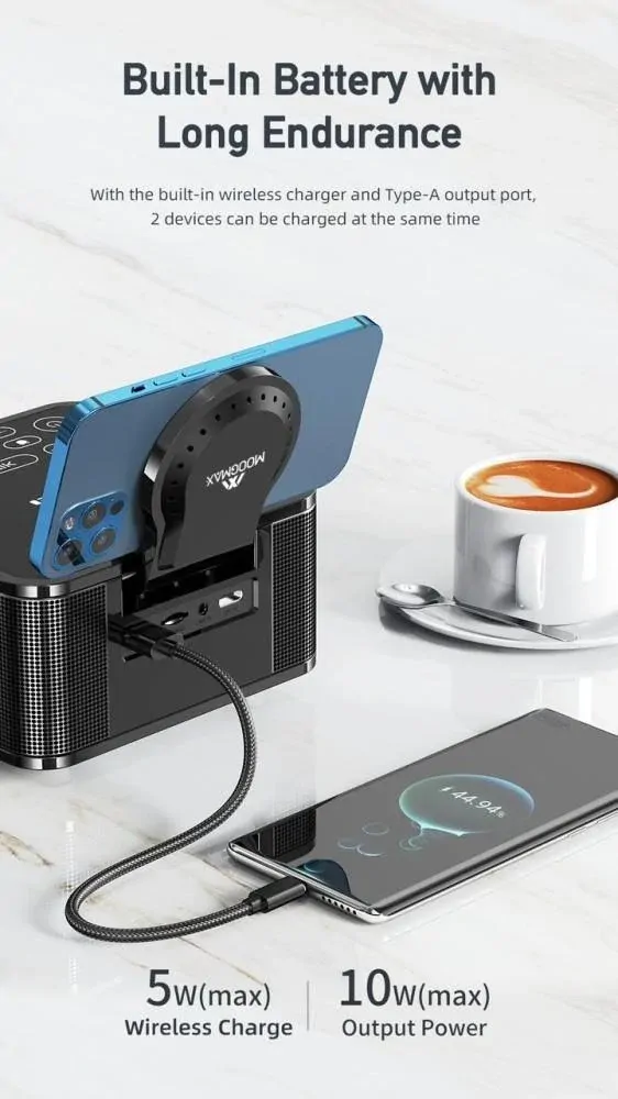 مكبر صوت بلوتوث و منبه وشاحن لاسلكي 6IN1